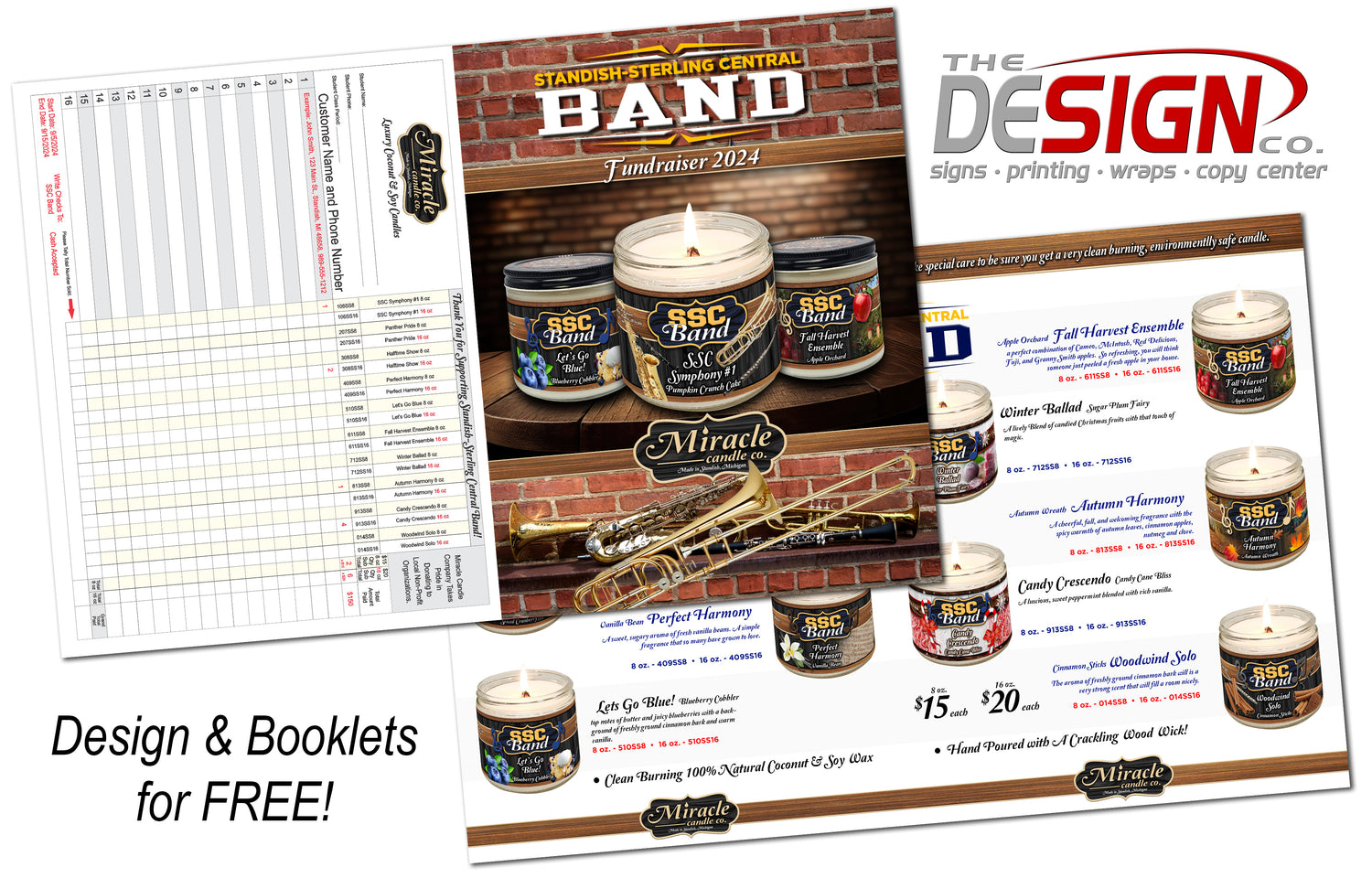 We custom design your order bookletand candle labels with our Design Company, send you proofs and print everything for FREE! And yes, we will deliver your booklets as well!